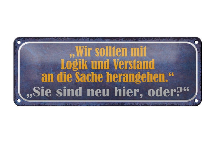 Blechschild Spruch 27x10cm Sie sind neu hier oder Dekoration