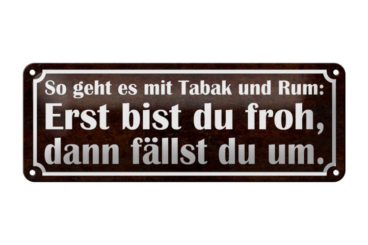 Blechschild Spruch 27x10cm so geht es mit Tabak und Rum Dekoration