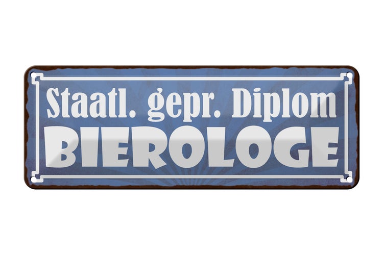 - TitelBlechschild Spruch 27x10cm staatlich geprüfter Diplom Bierologe Bier [ORIGINAL BLECHSCHILD von FEMER]