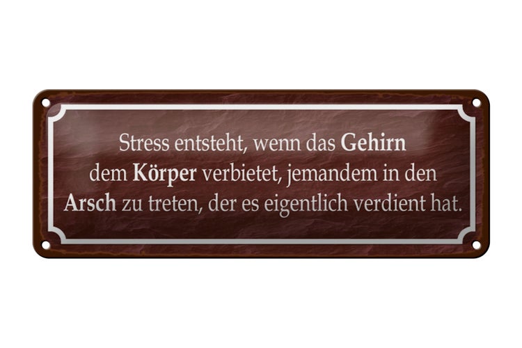 - TitelBlechschild Spruch 27x10cm Stress entsteht wenn das Gehirn Dekoration [ORIGINAL BLECHSCHILD von FEMER]