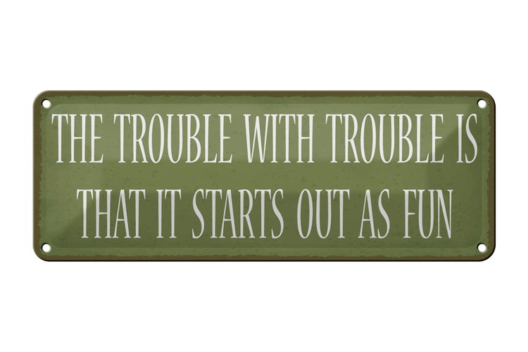 - TitelBlechschild Spruch 27x10cm the trouble with trouble is that Dekoration [ORIGINAL BLECHSCHILD von FEMER]
