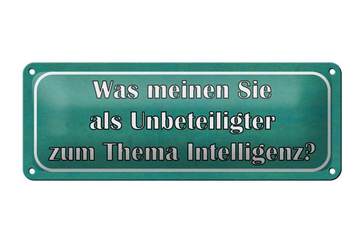Blechschild Spruch 27x10cm Thema Intelligenz Ihre Meinung Dekoration
