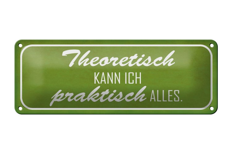 - TitelBlechschild Spruch 27x10cm theoretisch kann ich praktisch Dekoration [ORIGINAL BLECHSCHILD von FEMER]