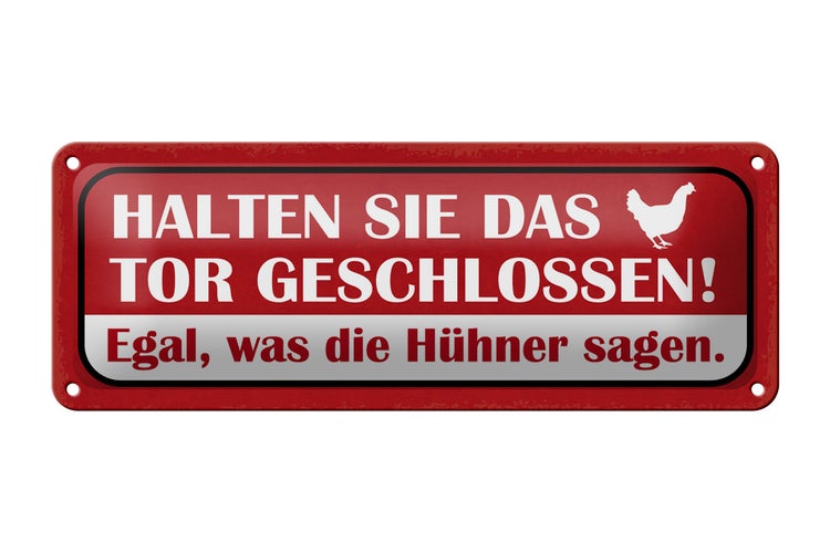 - TitelBlechschild Spruch 27x10cm Tor geschlossen egal was Hühner Dekoration [ORIGINAL BLECHSCHILD von FEMER]