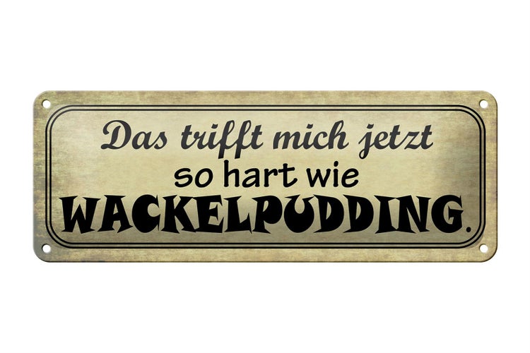 - TitelBlechschild Spruch 27x10cm trifft hart wie Wackelpudding Dekoration [ORIGINAL BLECHSCHILD von FEMER]