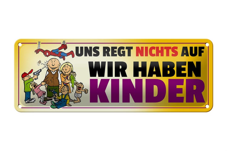 - TitelBlechschild Spruch 27x10cm Uns regt nichts auf wir haben Kinder [ORIGINAL BLECHSCHILD von FEMER]
