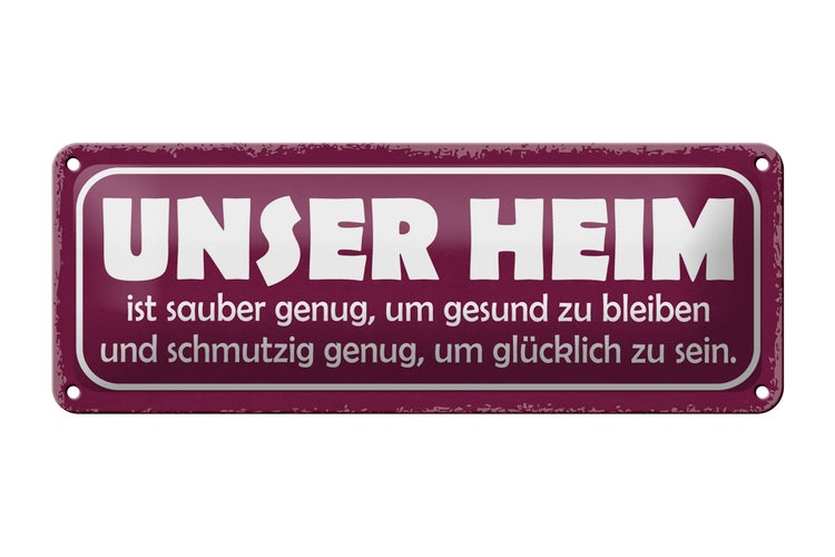 - TitelBlechschild Spruch 27x10cm unser Heim sauber genug gesund Dekoration [ORIGINAL BLECHSCHILD von FEMER]