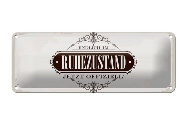 - TitelBlechschild Spruch 27x10cm Vintage endlich im Ruhestand [ORIGINAL BLECHSCHILD von FEMER]