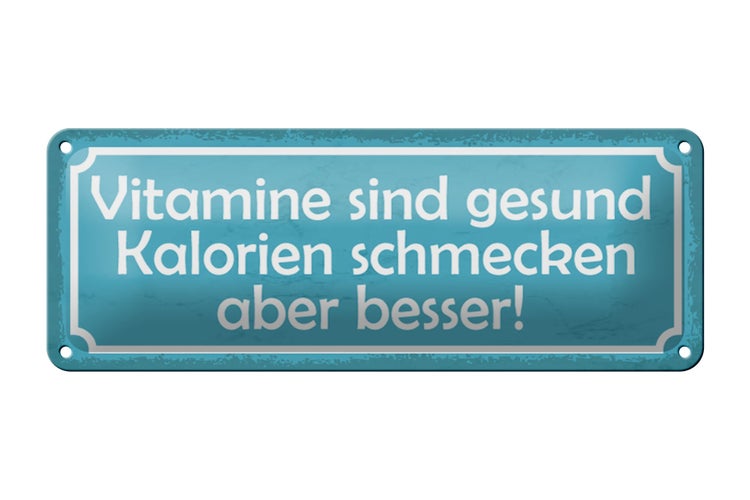 - TitelBlechschild Spruch 27x10cm Vitamine gesund Kalorien besser Dekoration [ORIGINAL BLECHSCHILD von FEMER]
