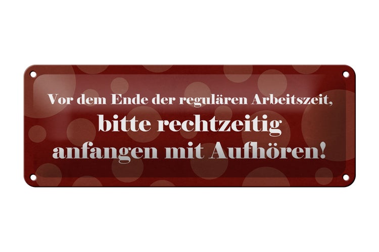 Blechschild Spruch 27x10cm Vor Ende der regulären Arbeitszeit