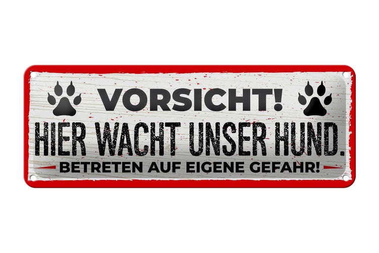 - TitelBlechschild Spruch 27x10cm Vorsicht! Hier wacht unser Hund! [ORIGINAL BLECHSCHILD von FEMER]