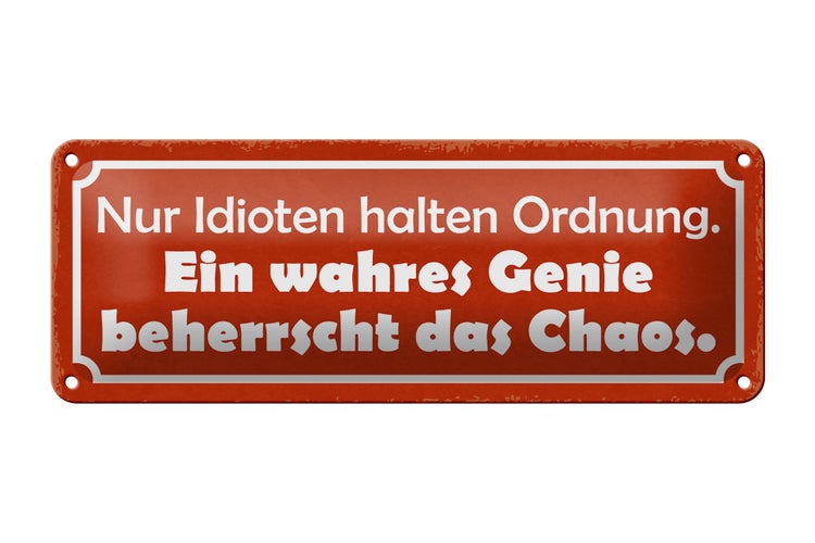 - TitelBlechschild Spruch 27x10cm wahres Genie beherrscht Chaos Dekoration [ORIGINAL BLECHSCHILD von FEMER]