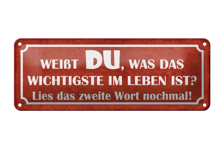 - TitelBlechschild Spruch 27x10cm weißt du was wichtigste im Leben Dekoration [ORIGINAL BLECHSCHILD von FEMER]
