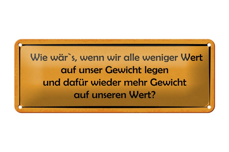 Blechschild Spruch 27x10cm weniger Wert auf Gewicht dafür Dekoration
