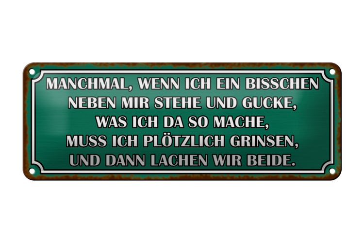 Blechschild Spruch 27x10cm wenn ich neben mir stehe und Dekoration