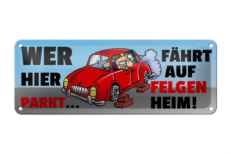 - TitelBlechschild Spruch 27x10cm Wer hier parkt fährt auf Felgen Heim [ORIGINAL BLECHSCHILD von FEMER]