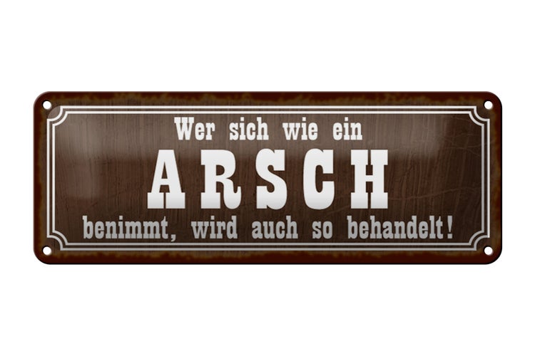 - TitelBlechschild Spruch 27x10cm wer sich wie ein Arsh benimmt Dekoration [ORIGINAL BLECHSCHILD von FEMER]