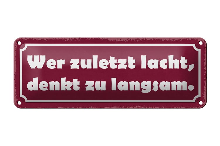 - TitelBlechschild Spruch 27x10cm wer zuletzt lacht denkt langsam Dekoration [ORIGINAL BLECHSCHILD von FEMER]