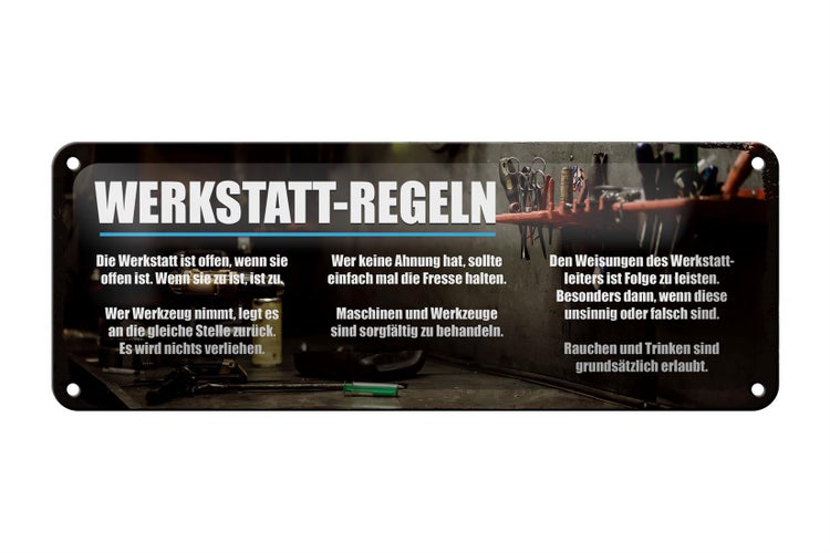 - TitelBlechschild Spruch 27x10cm Werkstatt Regeln offen wenn offen [ORIGINAL BLECHSCHILD von FEMER]