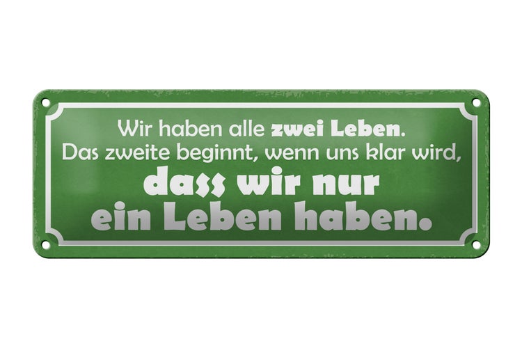 Blechschild Spruch 27x10cm wir haben zwei Leben das zweite Dekoration