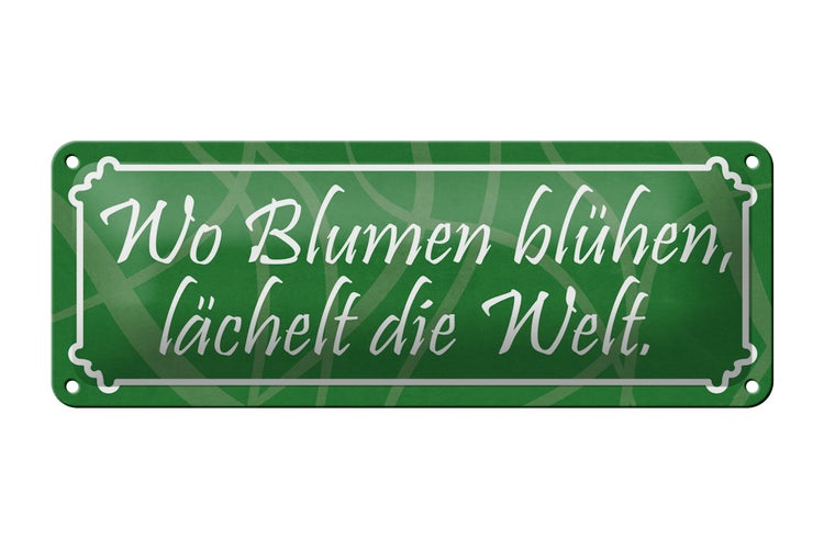 - TitelBlechschild Spruch 27x10cm Wo Blumen blühen lächelt Welt Dekoration [ORIGINAL BLECHSCHILD von FEMER]