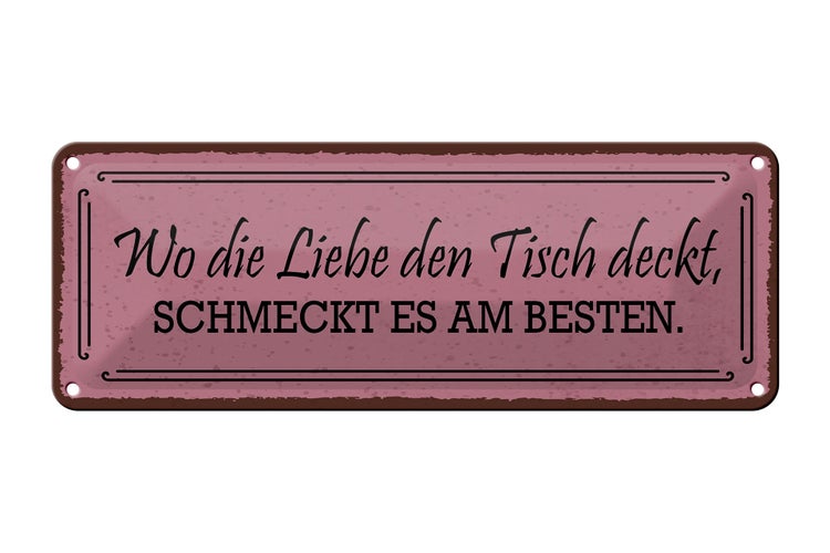 Blechschild Spruch 27x10cm wo die Liebe den Tisch deckt Dekoration