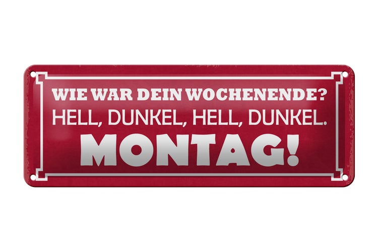 - TitelBlechschild Spruch 27x10cm Wochenende hell dunkel Montag Dekoration [ORIGINAL BLECHSCHILD von FEMER]