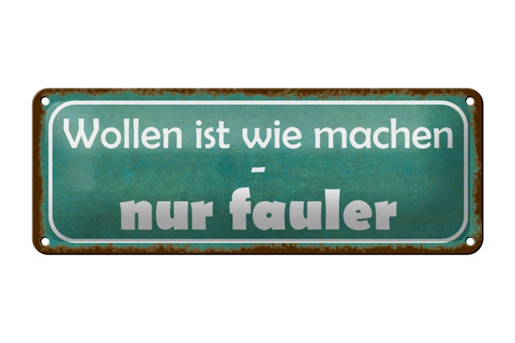 - TitelBlechschild Spruch 27x10cm wollen ist wie machen nur fauler Dekoration [ORIGINAL BLECHSCHILD von FEMER]