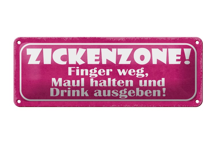 - TitelBlechschild Spruch 27x10cm Zickenzone Finger weg Maul halten Drink ausgeben [ORIGINAL BLECHSCHILD von FEMER]