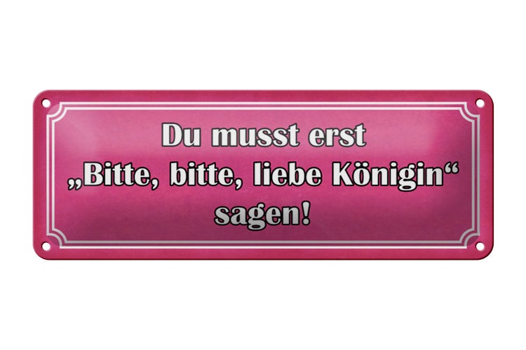 Blechschild Spruch 27x10cm zuerst bitte liebe Königin sagen Dekoration