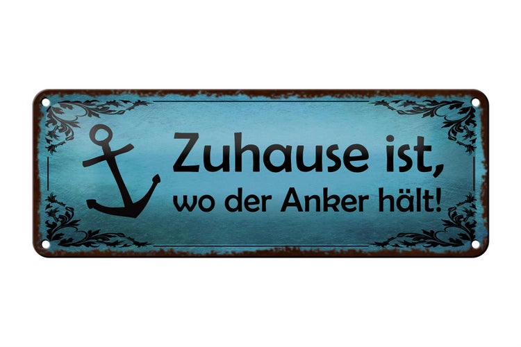 - TitelBlechschild Spruch 27x10cm Zuhause ist wo der Anker hält Dekoration [ORIGINAL BLECHSCHILD von FEMER]