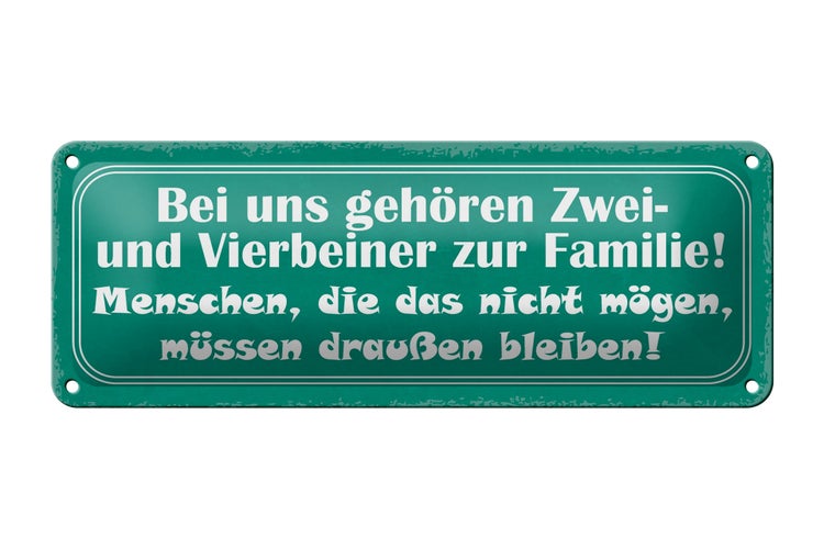 - TitelBlechschild Spruch 27x10cm Zwei und Vierbeiner zur Familie Dekoration [ORIGINAL BLECHSCHILD von FEMER]