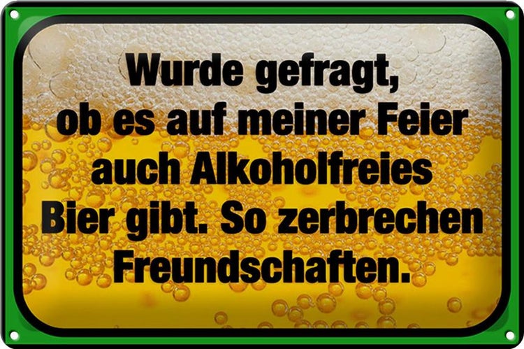 - TitelBlechschild Spruch 30x20cm alkoholfreies Bier zerbricht [ORIGINAL BLECHSCHILD von FEMER]