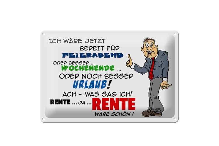 - TitelBlechschild Spruch 30x20cm Bereit für Feierabend Rente [ORIGINAL BLECHSCHILD von FEMER]