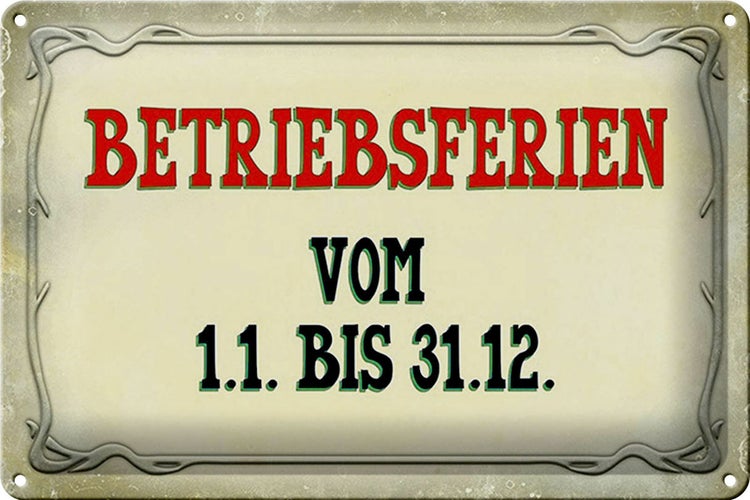 - TitelBlechschild Spruch 30x20cm Betriebsferien 1.1 bis 31.12 [ORIGINAL BLECHSCHILD von FEMER]