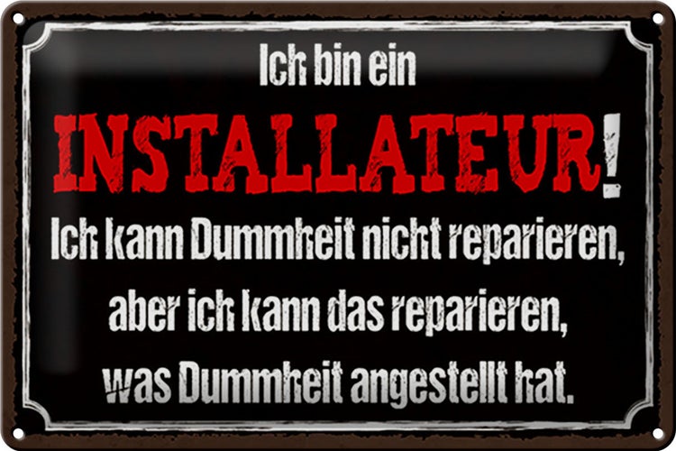 - TitelBlechschild Spruch 30x20cm bin Installateur kann reparieren [ORIGINAL BLECHSCHILD von FEMER]
