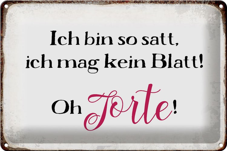 - TitelBlechschild Spruch 30x20cm bin satt mag kein Blatt Oh Torte [ORIGINAL BLECHSCHILD von FEMER]