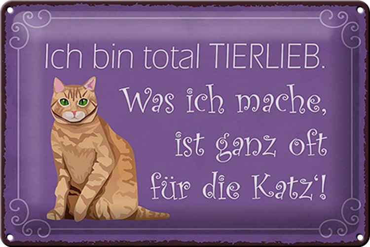 - TitelBlechschild Spruch 30x20cm bin total tierlieb oft für Katze [ORIGINAL BLECHSCHILD von FEMER]