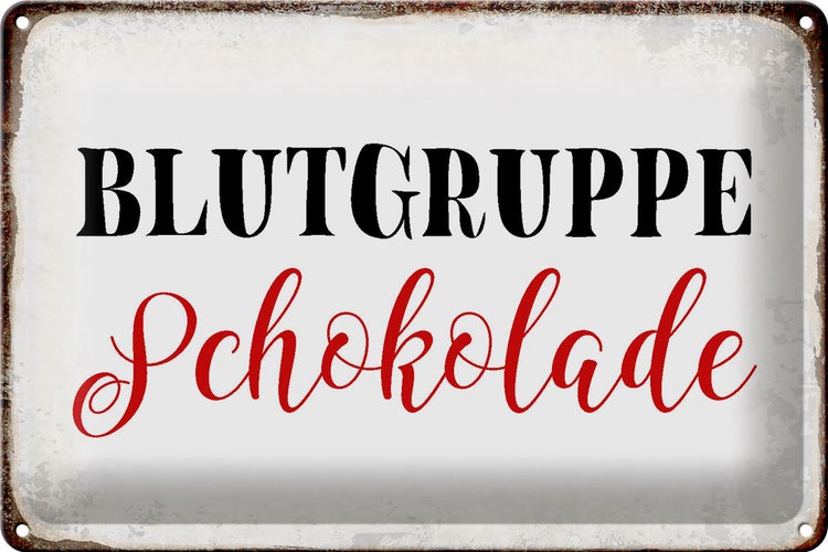 - TitelBlechschild Spruch 30x20cm Blutgruppe Schokolade [ORIGINAL BLECHSCHILD von FEMER]