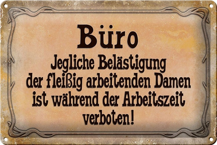 - TitelBlechschild Spruch 30x20cm Büro Belästigung der Damen [ORIGINAL BLECHSCHILD von FEMER]