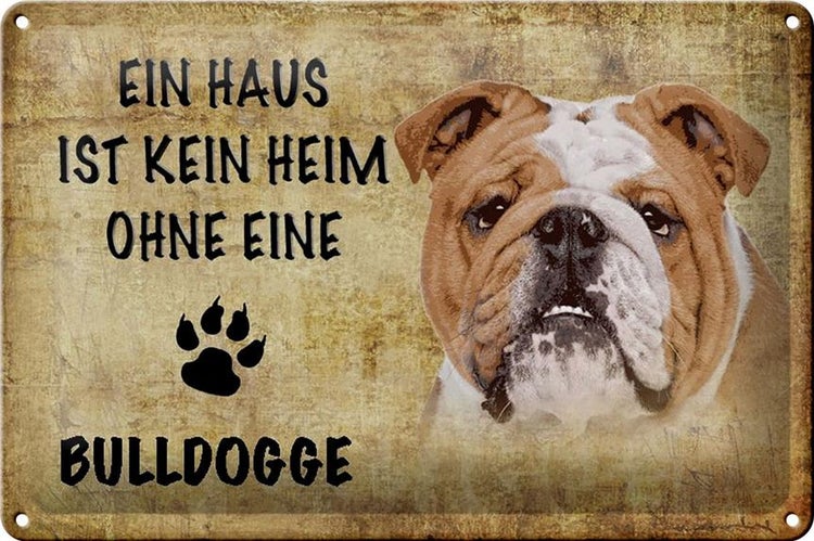 - TitelBlechschild Spruch 30x20cm Bulldogge Hund ohne kein Heim [ORIGINAL BLECHSCHILD von FEMER]