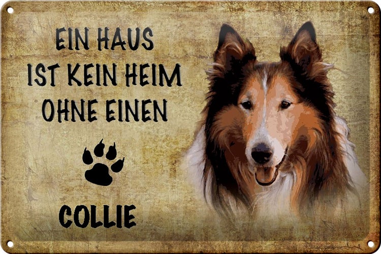 - TitelBlechschild Spruch 30x20cm Collie Hund ohne kein Heim [ORIGINAL BLECHSCHILD von FEMER]