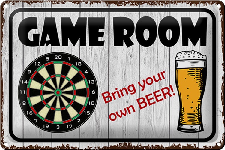 - TitelBlechschild Spruch 30x20cm Dart game room bring your Beer [ORIGINAL BLECHSCHILD von FEMER]