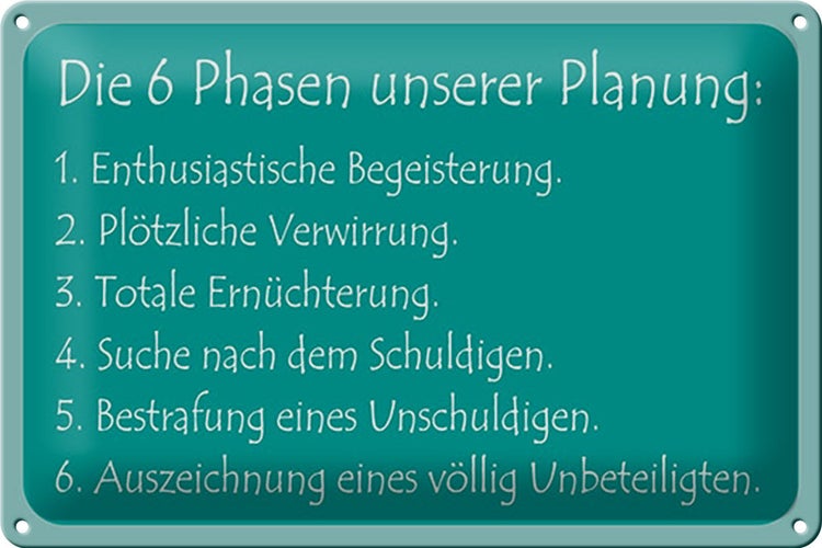- TitelBlechschild Spruch 30x20cm Die 6 Phasen unserer Planung [ORIGINAL BLECHSCHILD von FEMER]