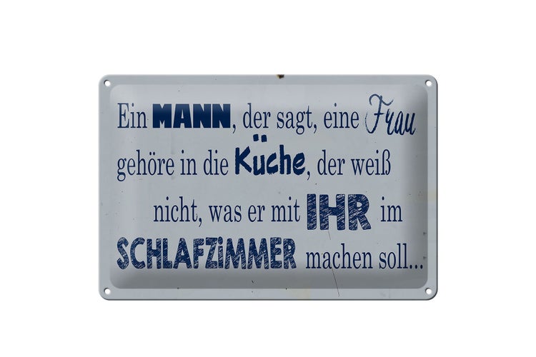 - TitelBlechschild Spruch 30x20cm ein Mann der sagt Frau in Küche [ORIGINAL BLECHSCHILD von FEMER]