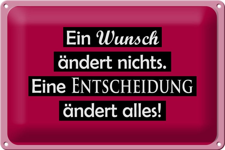 Blechschild Spruch 30x20cm Ein Wunsch ändert nichts
