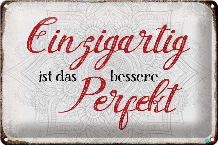 - TitelBlechschild Spruch 30x20cm einzigartig ist besseres Perfekt [ORIGINAL BLECHSCHILD von FEMER]