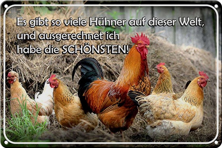 Blechschild Spruch 30x20cm es gibt so viele Hühner und
