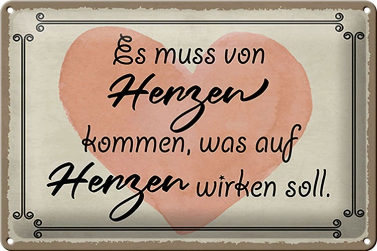 - TitelBlechschild Spruch 30x20cm es muss von Herzen kommen Herz [ORIGINAL BLECHSCHILD von FEMER]