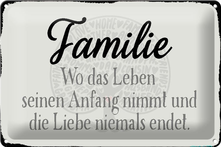Blechschild Spruch 30x20cm Familie wo Leben Anfang nimmt